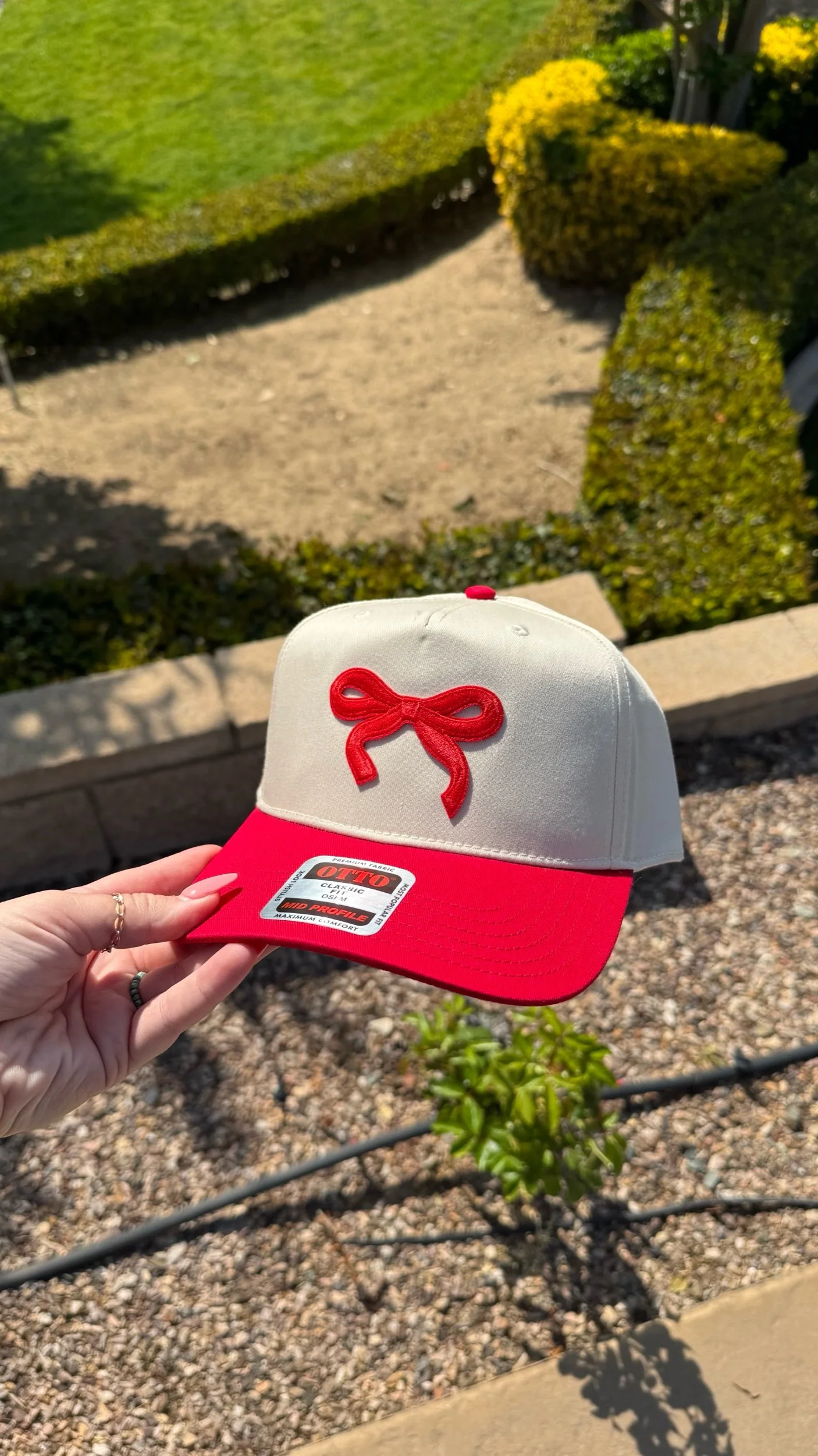 Shop › PREORDER - Red Bow Hat Image 1 of 3 Image 2 of 3 Image 3 of 3 PREORDER - Red Bow Hat $32.00 will ship May 1. Add To Cart Added! will ship May 1.